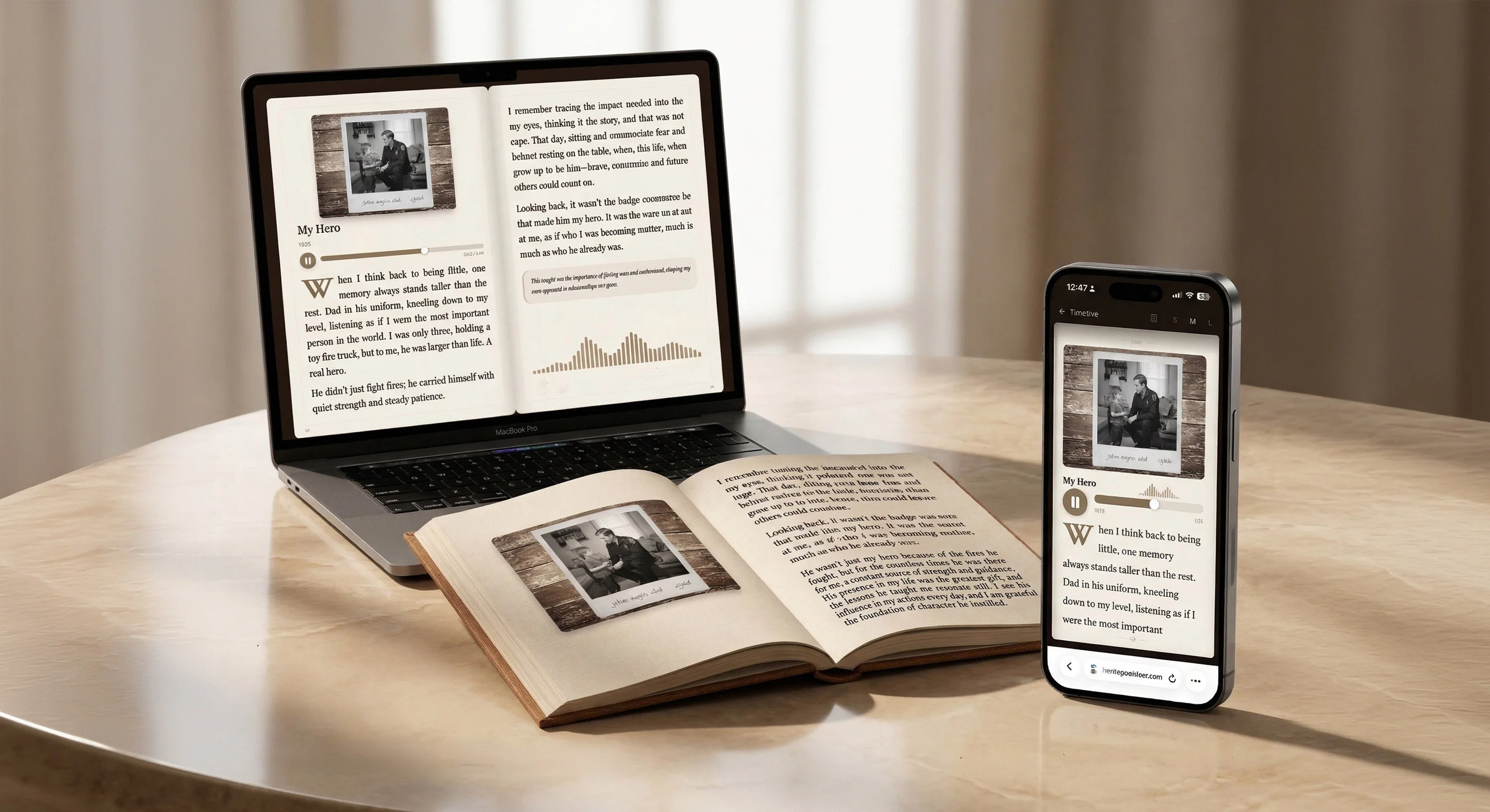 Your family hears the story the moment it's recorded, in their voice, in a living book.